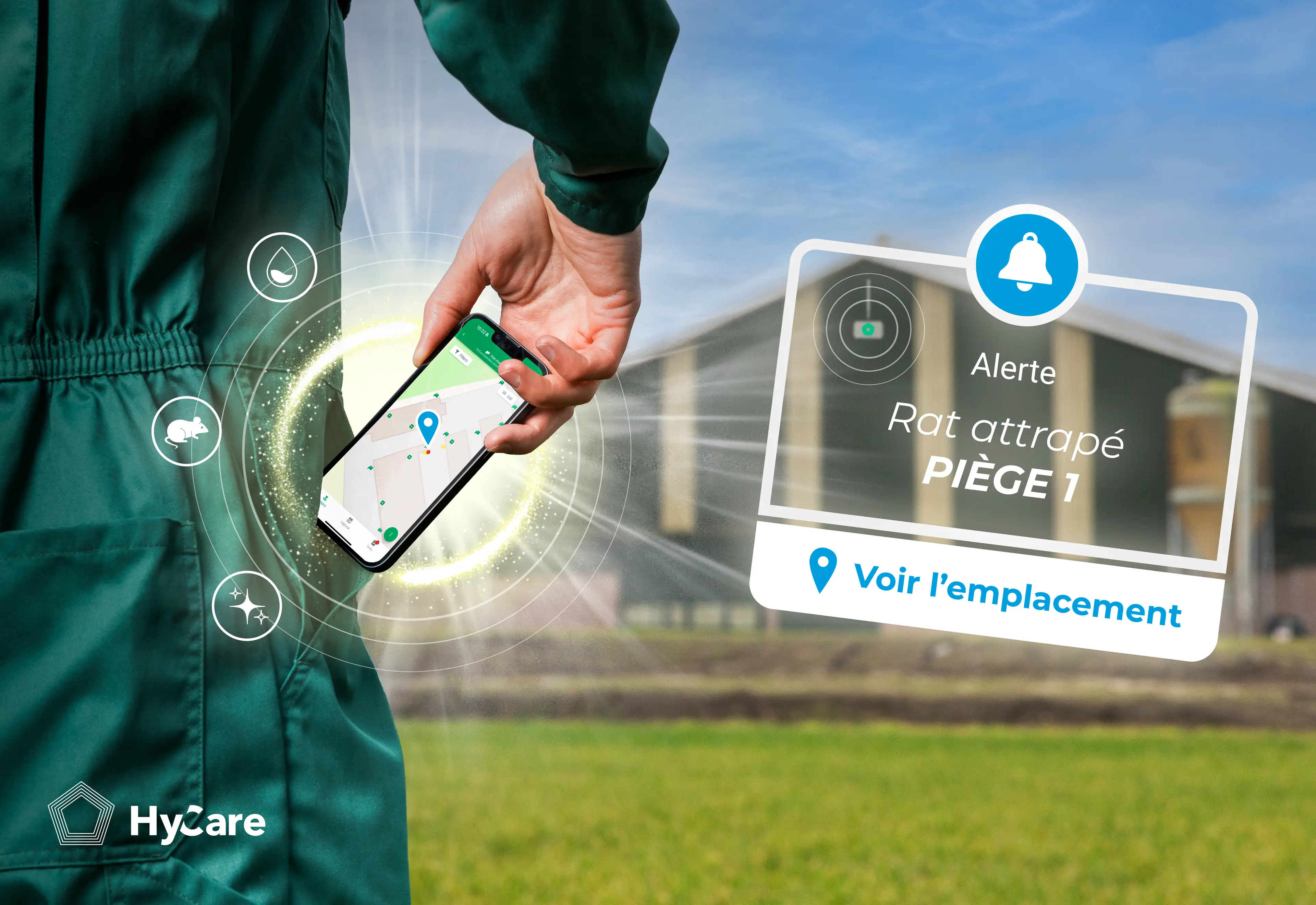 Une révolution dans la lutte contre les bioagresseurs en élevage. Cette solution combine la lutte biologique à la technologie numérique. HyCare DCR associe des pièges, des capteurs et des solutions de mise à mort à une application disponible sur smartphone. Il permet une analyse en temps réel, une surveillance et une gestion à distance du plan de prévention et de lutte contre les rongeurs. Les éleveurs ont ainsi une information précise de la situation grâce à une interface ergonomique accessible partout. L’élimination des biocides dans cette approche garantit l’absence de développement de résistances chez les rongeurs, ce qui en fait une solution durable et écologique.